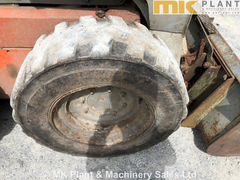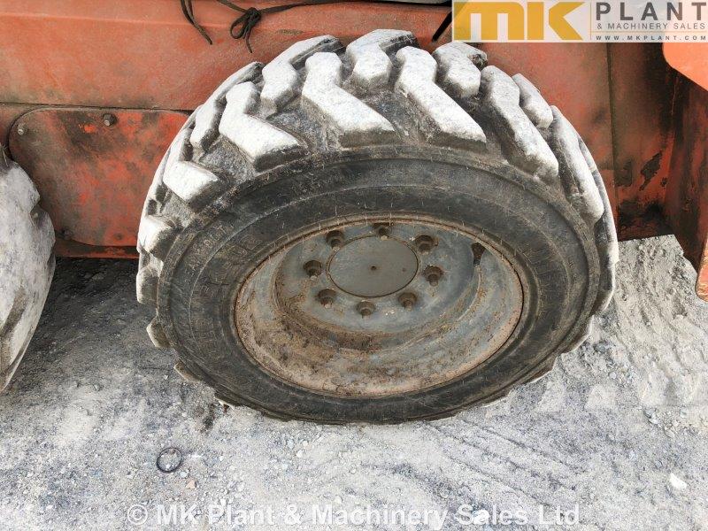 Manual quick coupler & bucket, auxiliary circuit, original paint, standard hand & foot controls, 48hp Kubota V2203 engine, 3 x tyres 10% 1 x tyre 75%. Loader in working order all round.
