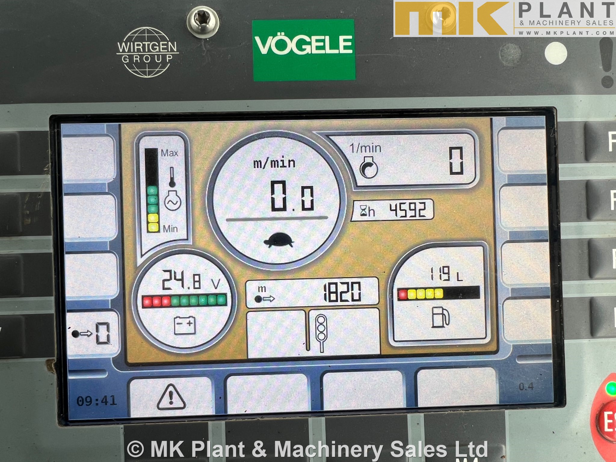 AB500TV Screed fitted (2.5 – 5.0m), hydraulic side plate adjustment, hydraulic auger height adjustment, hydraulic crown angle adjustment, 125kW Cummins engine with EPA label, supplied with 2 x screed controllers, 2 x auger sensors and 2 x sonic levelling sensors.