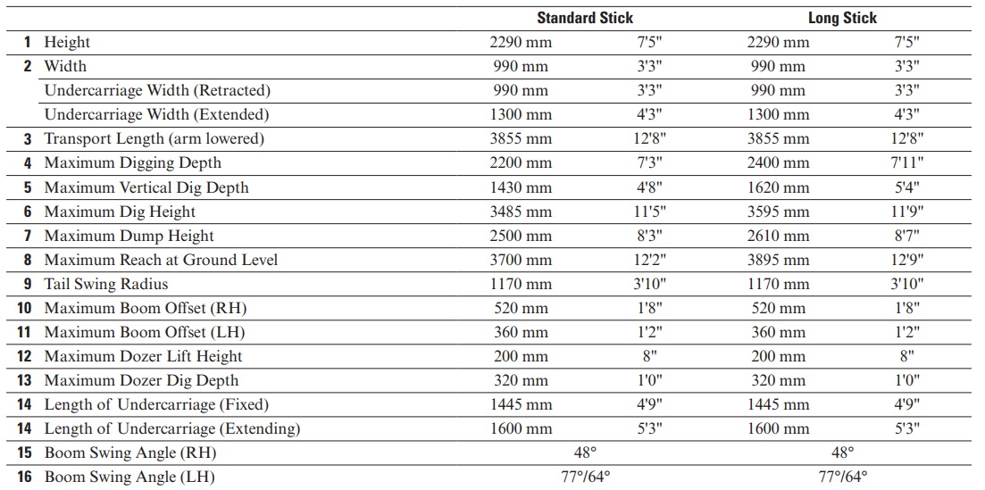 Manual quick coupler & 3 x buckets (36″, 24″ & 12″), 2 way hammer circuit, extending blade & undercarriage (990mm – 1300mm), 13.4kW Yanmar engine, 2 speed tracks, 3 x work-lights, ROPS canopy, as new condition all round.